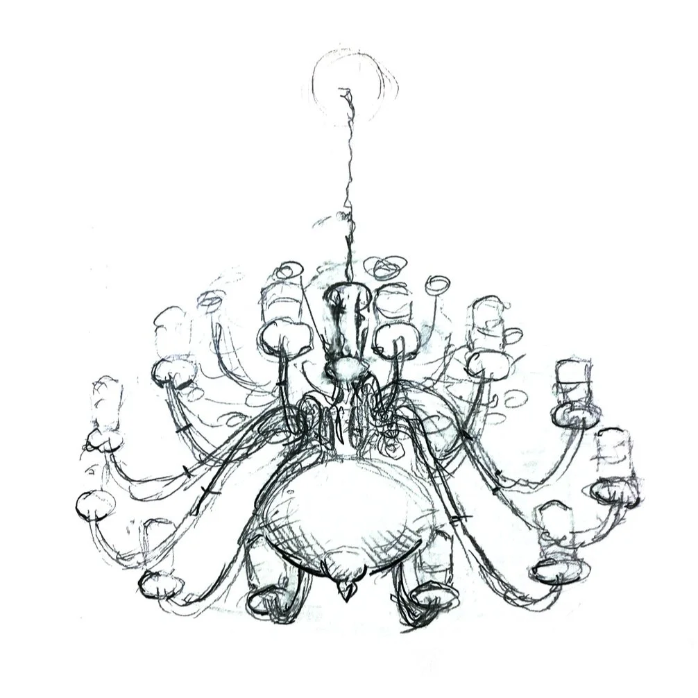 Pierson Library’s Chandelier - ink, 5” x 7”